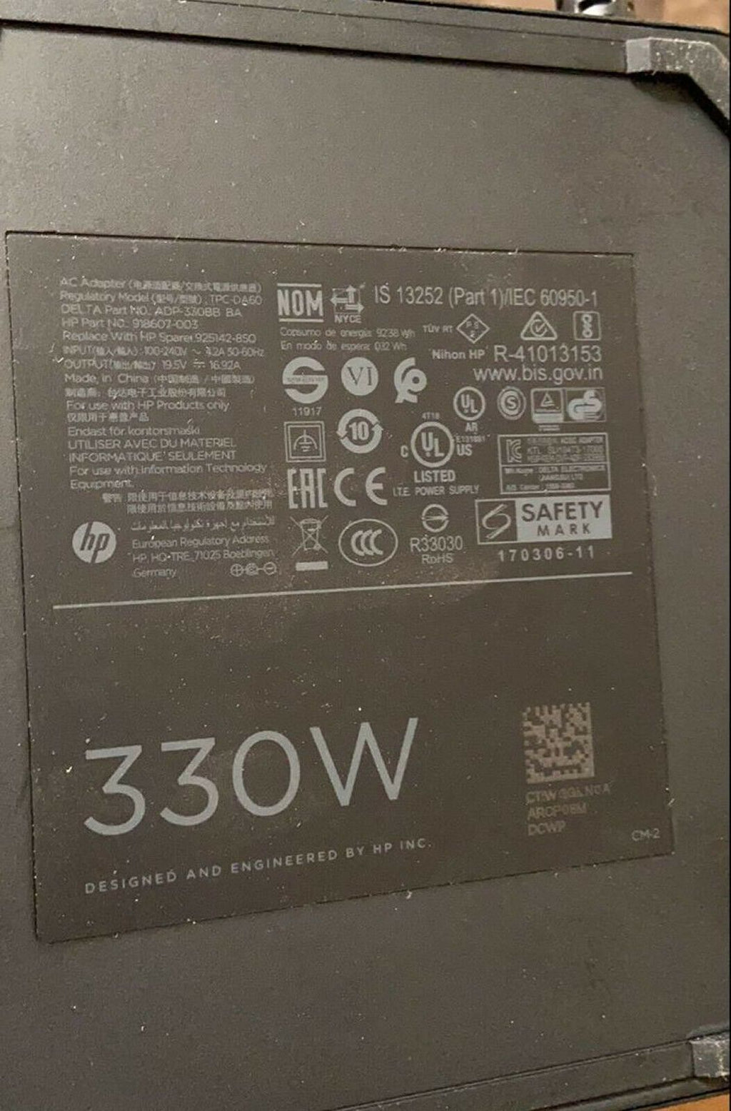 100% Original HP 330W AC Adapter.