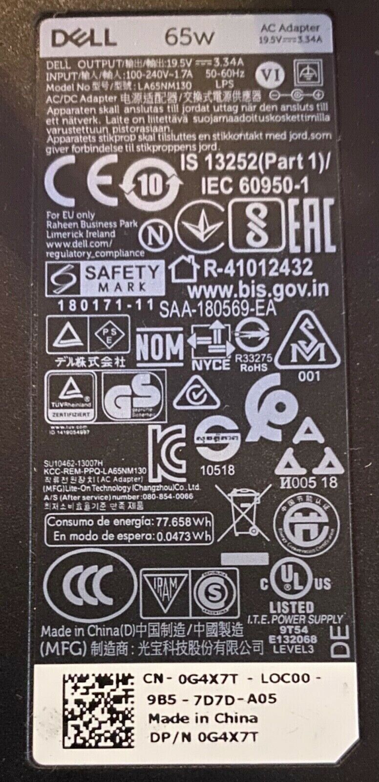 OUTPUT: 19.5V 3.34A, 65W