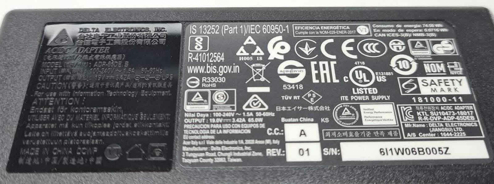 OUTPUT: 19V    3.42A, 65W