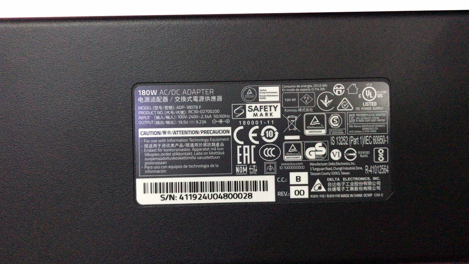 100% Original Razer 180W AC Adapter.