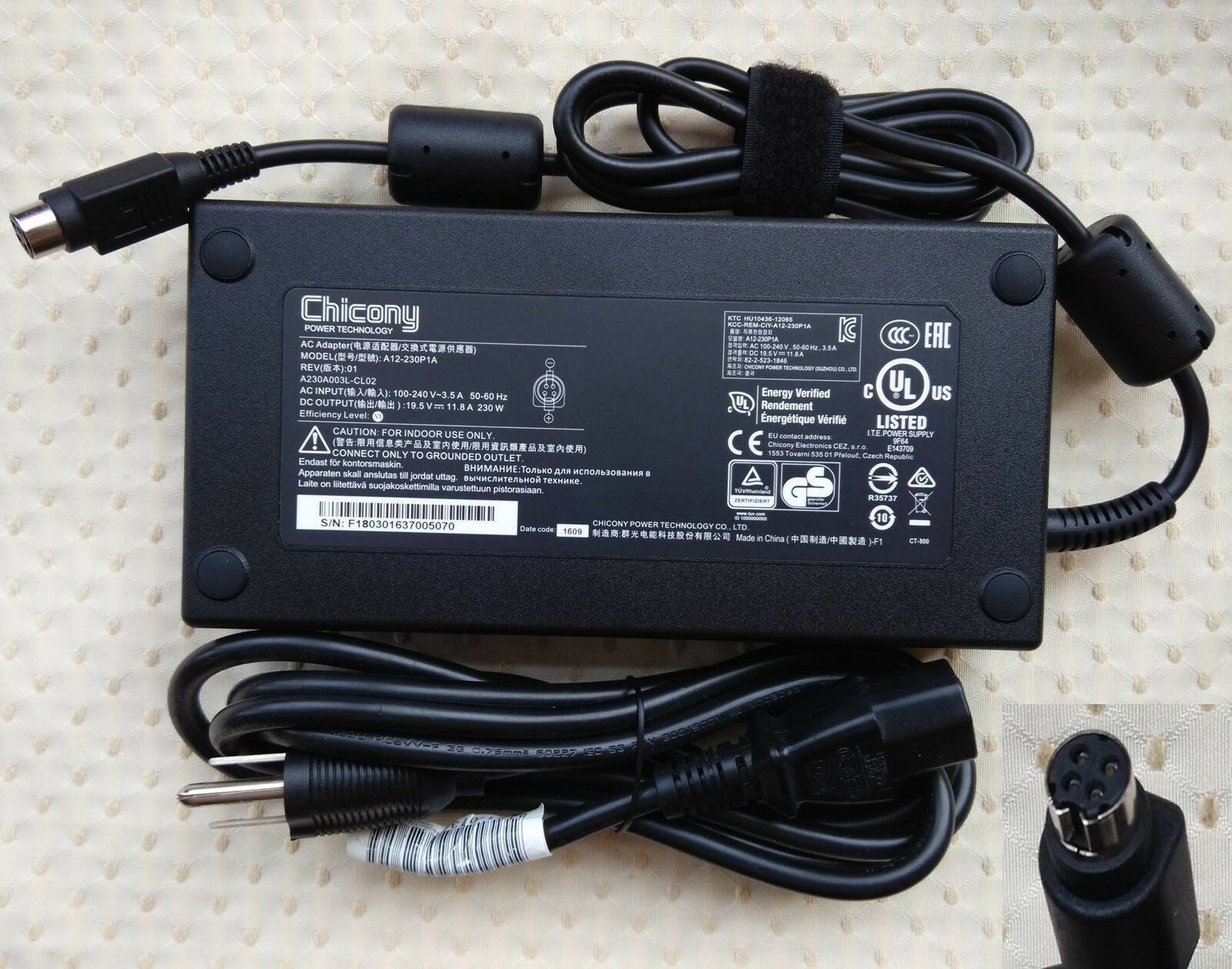 OUTPUT: 19.5V 11.8A, 230W