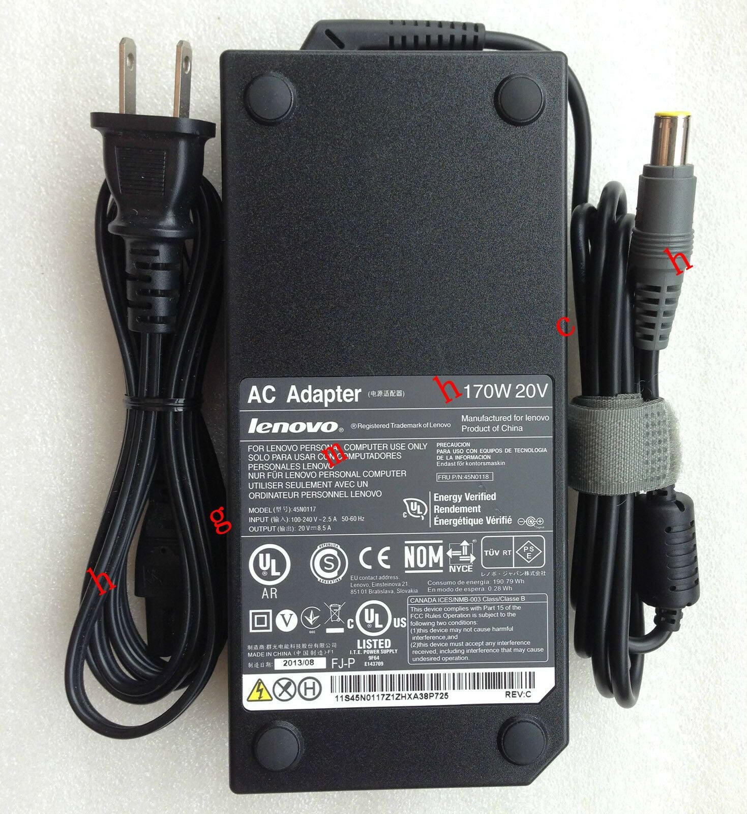 100% Original Lenovo 170W AC Adapter. INPUT: 100-240V, 50-60Hz (for worldwide use)